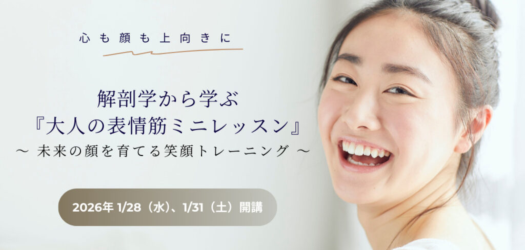 実は…お顔の筋肉(表情筋)は、ただ動かせばいいではありません。 体の筋肉と同じで、「解剖学」に基づいた正しい動かし方があるんです。