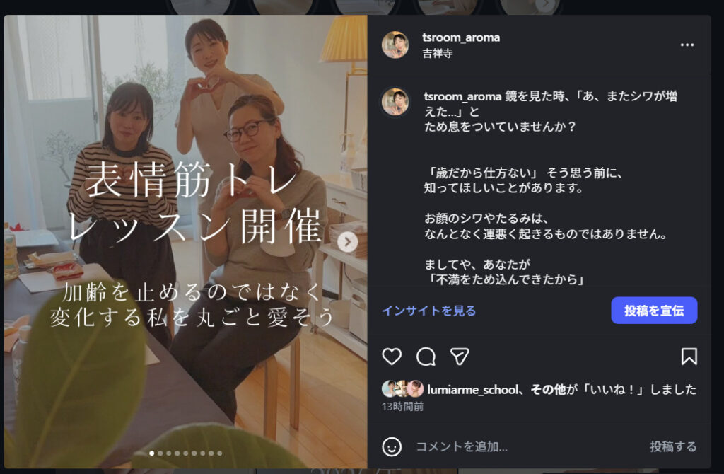 T’s BLOGT’s Blog 表情筋トレーニングレッスン 2025年ありがとうございました 表情筋トレーニング講座開催のおしらせ セラピストスクールLumiarmeについて スクールが新しくなります スクールテキスト準備♪ Load More最新ご予約状況お問合せはLINE&メールフォームにてLINEご利用が初めての方はこちら▽